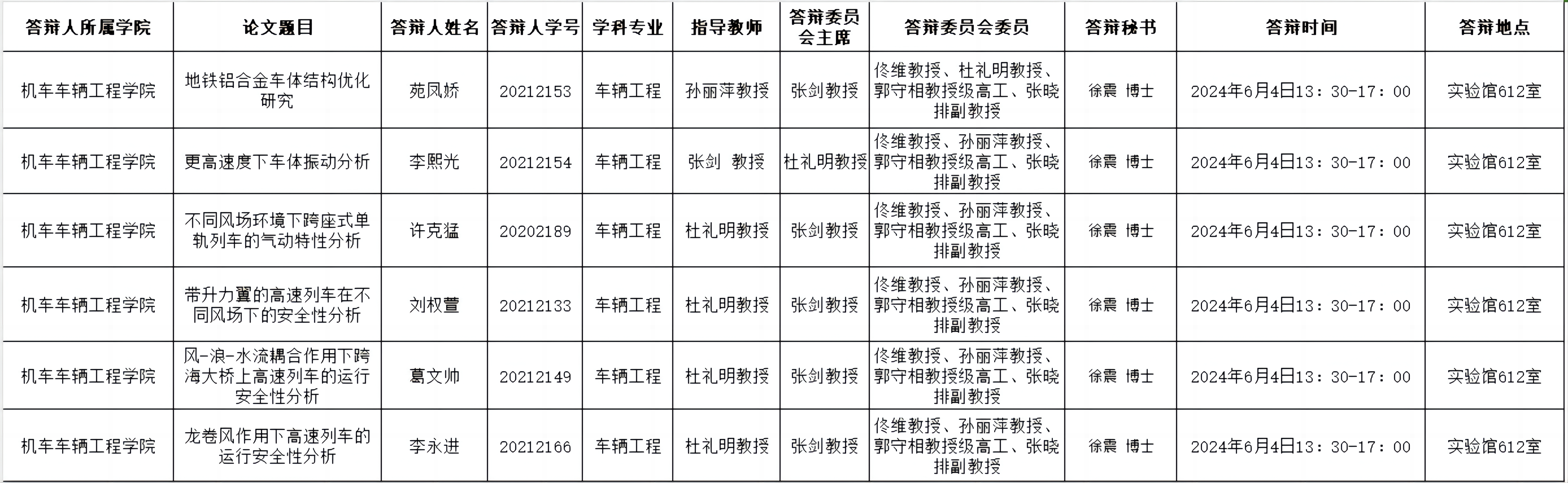 6月6日硕士学位论文答辩公告
