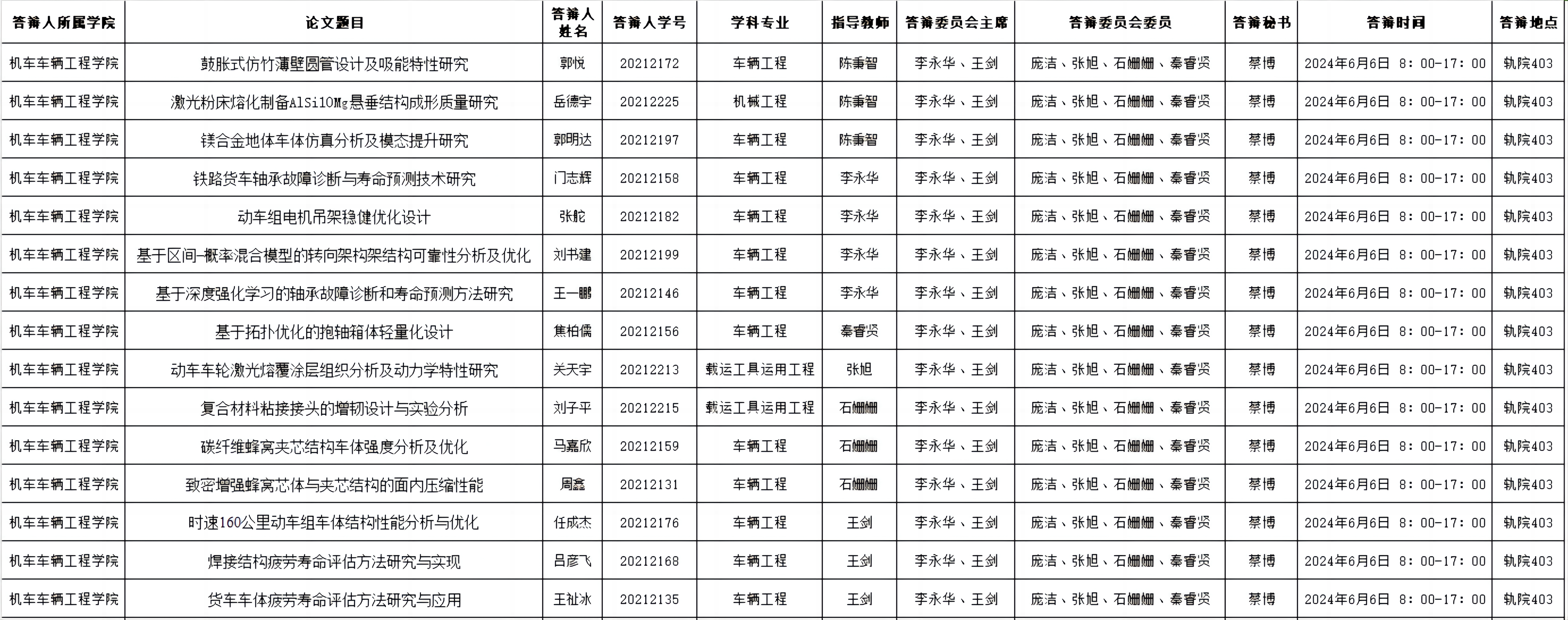 6月6日硕士学位论文答辩公告