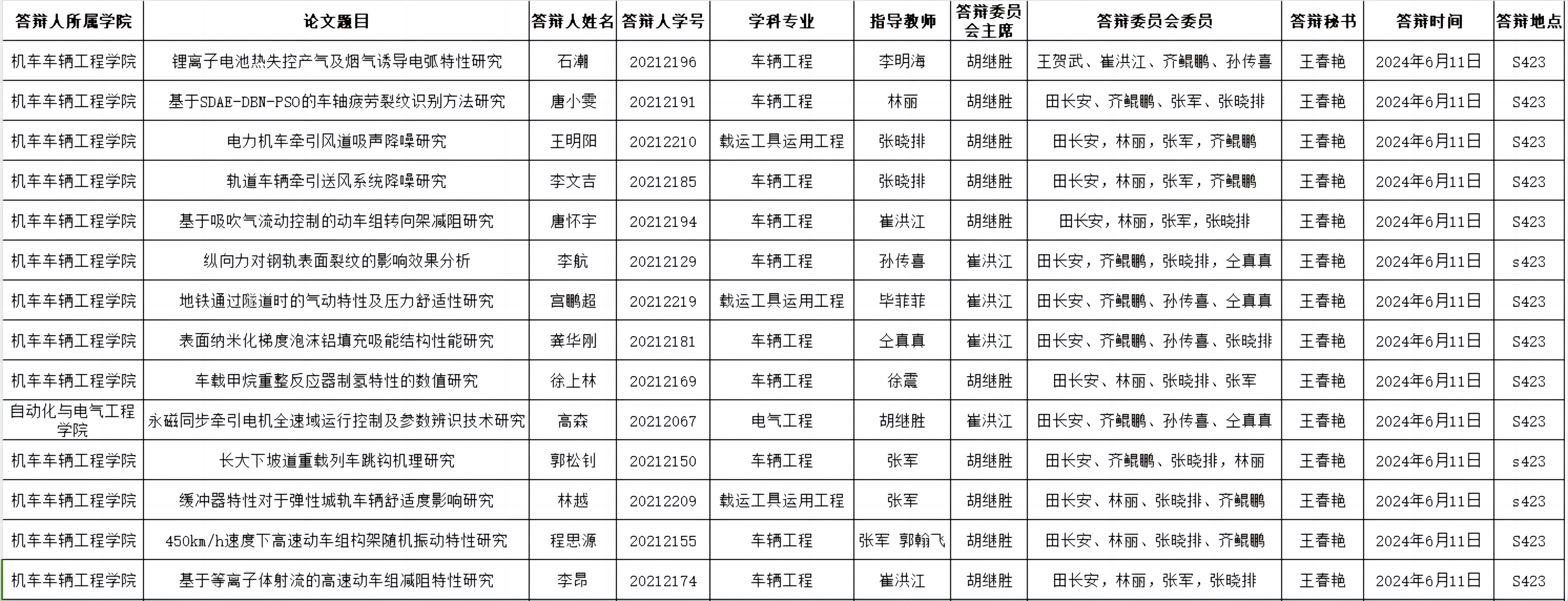 6月11日硕士学位论文答辩公告