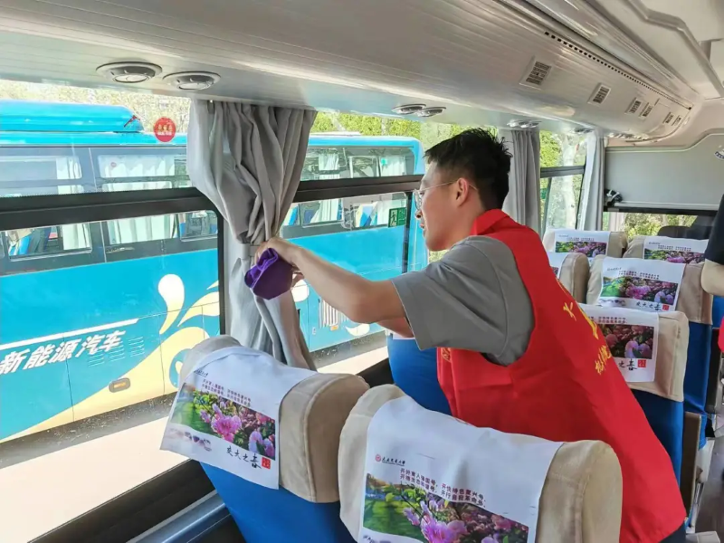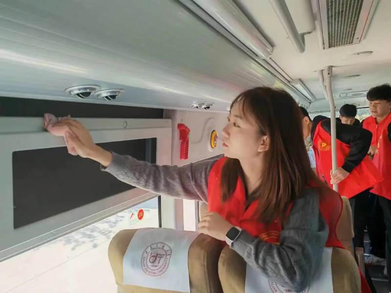 组织志愿者积极参与了擦车劳动活动,用汗水浇灌着对劳动的敬意,用行动传递着对劳动者的致敬。