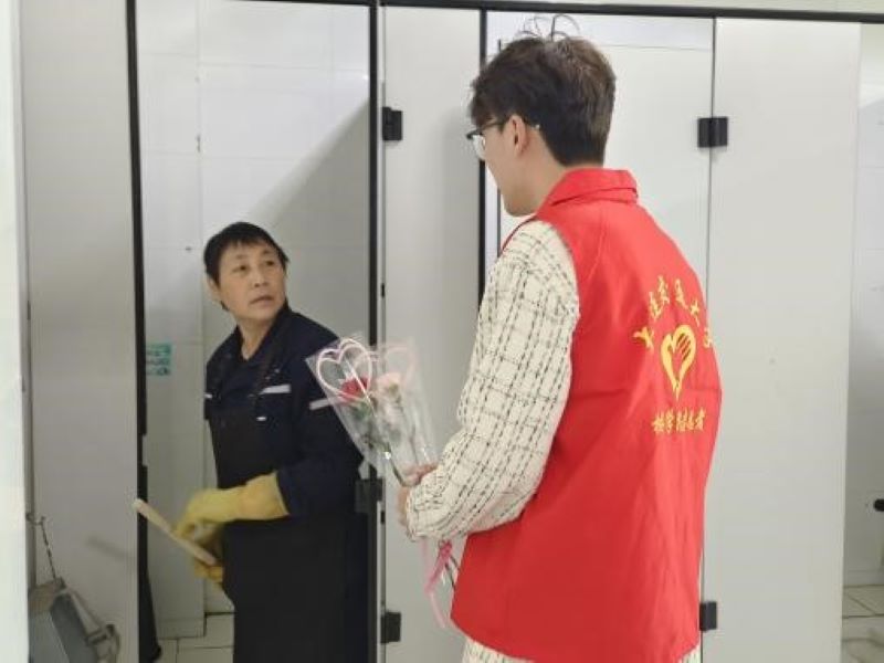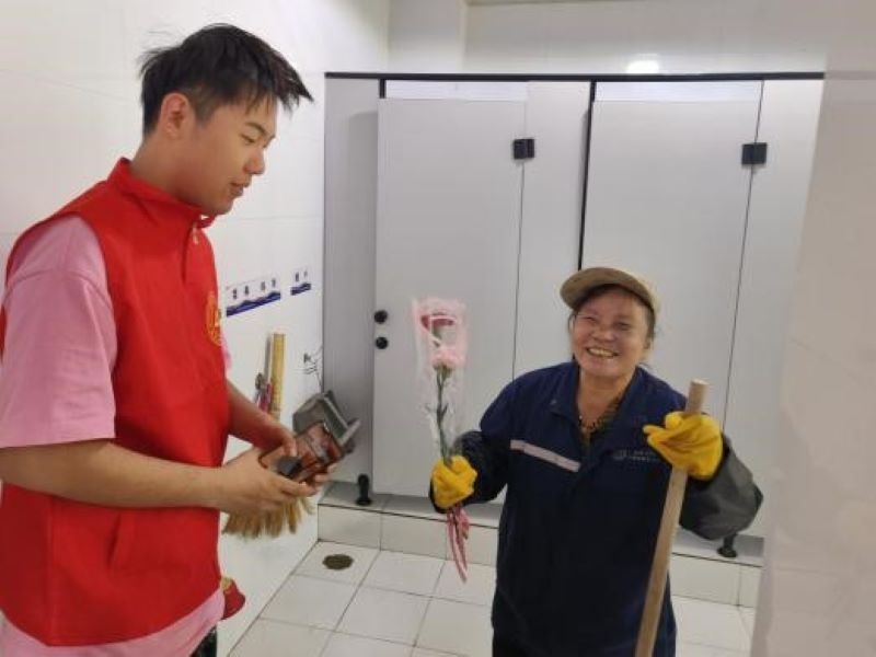 在辛勤的工作后,他们意识到,平日里楼道的清洁并非来自于魔法,而是来自于阿姨们日复一日的辛勤劳动。正是这些平凡的劳动者,才保障了我们的生活环境干净整洁。同学们决定为阿姨送上美丽的鲜花,以表达同学们最深的感激与祝福,祝各位母亲节日快乐。