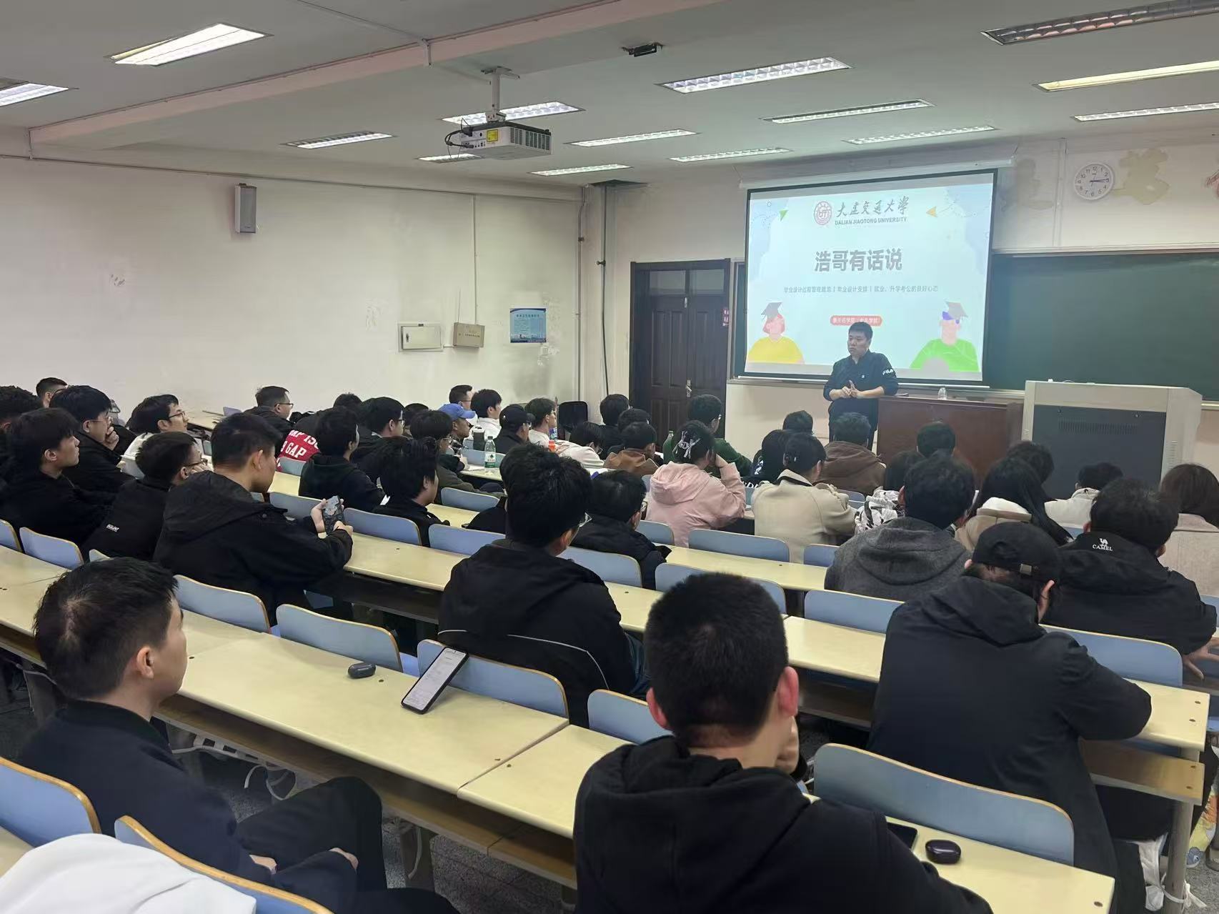 深受学生喜爱的“浩哥”除了给学生们带来了专业学习的指导,也关心学生们未来的职业发展规划,尤其是正在进行的秋季招聘会情况。曾老师亲切的与同学们就未来职业规划进行深入交流和沟通,鼓励同学们无论是选择升学或是就业,都要立足自身,为自己的目标积极努力。