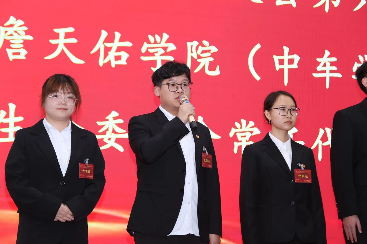 院团委书记吴永鑫致闭幕辞,他希望第一届学生会、研究生会在会后坚持“全心全意为同学服务”的宗旨,恪守职责,为学校“全速开启‘四列高铁’,奋力驶向一流大学”的建设目标贡献天佑青年的智慧与力量。