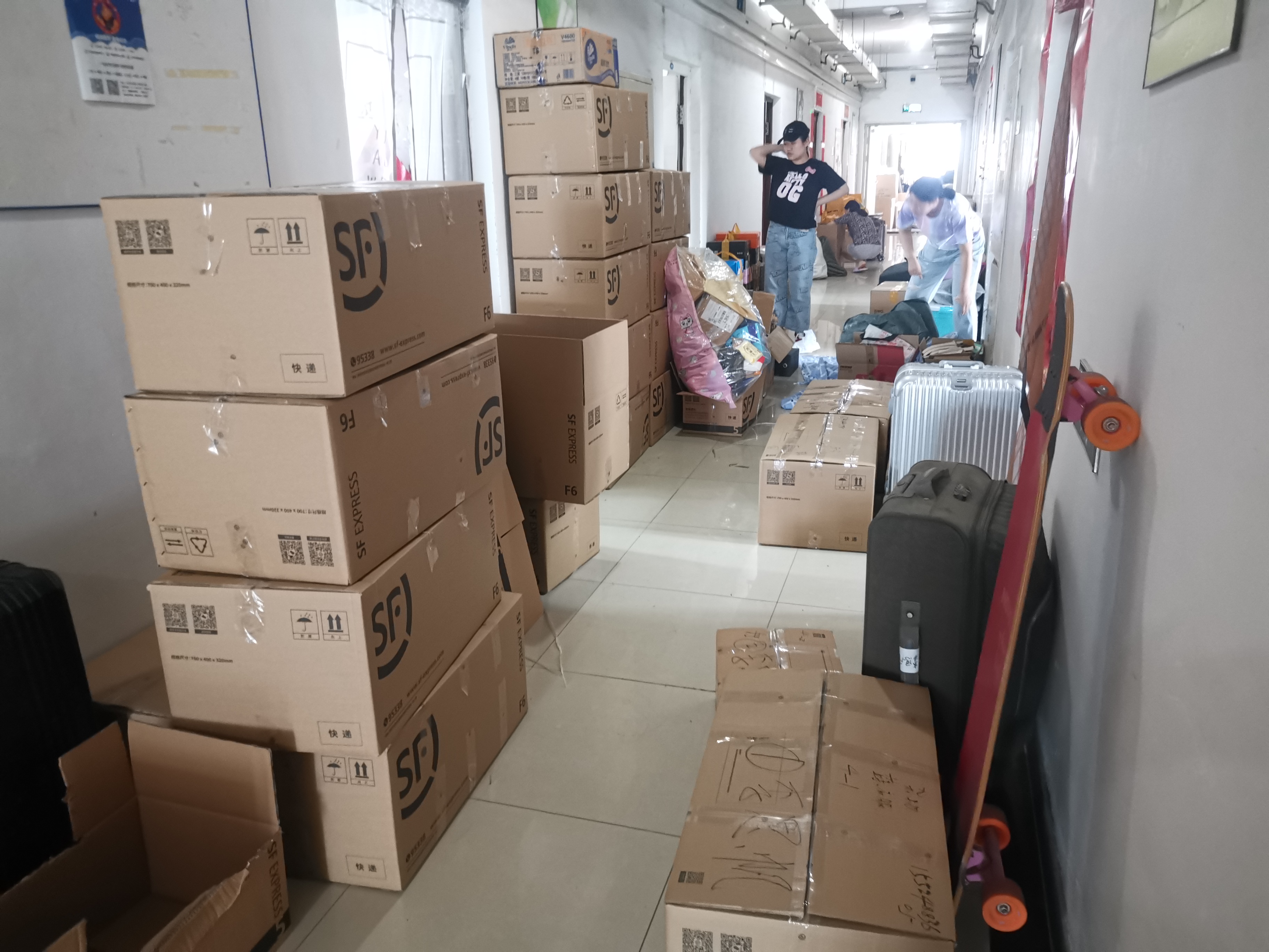 学院对此项工作高度重视,教师志愿者的身影奔波于各个宿舍之间,视频、整理、打包……整个过程有条不紊,每件行李上都写着学生们的姓名和件数,搬运行李过程忙而不乱。