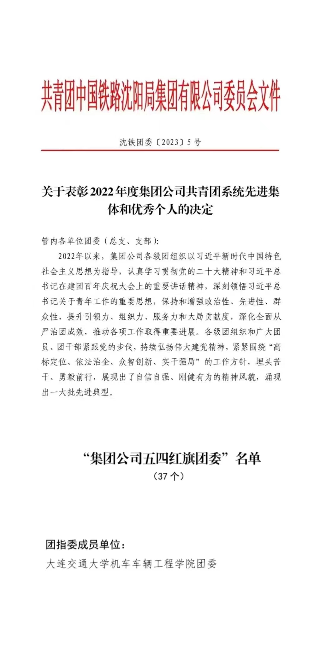 近日,为表彰先进、树立典型,激励各级团组织和广大团员、团干部向先进学习、向榜样看齐,共青团中国铁路沈阳局集团有限公司下发《关于表彰2022年度集团有限公司共青团系统先进集体和优秀个人的决定》(沈铁团委〔2023〕5号)。其中,美女做爱