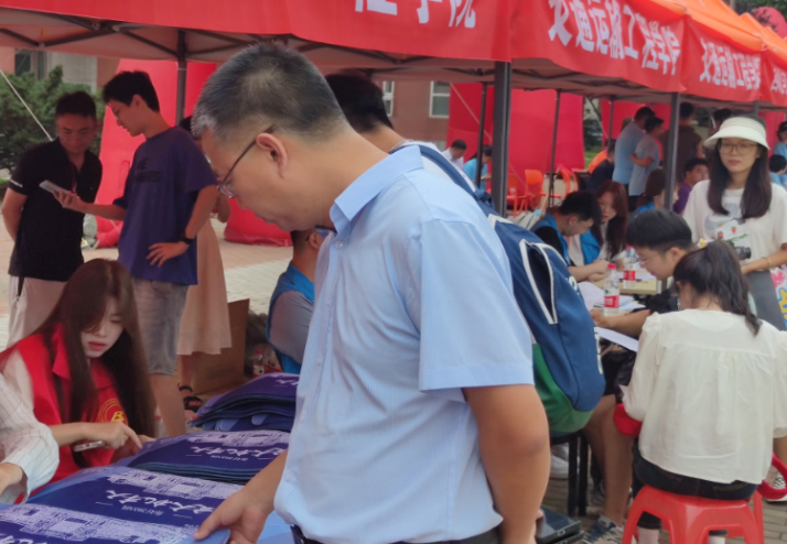 学院领导和老师来到迎新现场