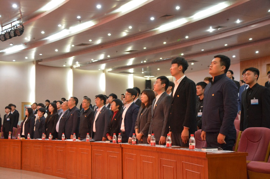 大会正式会议在雄壮的国歌合唱声中开幕。