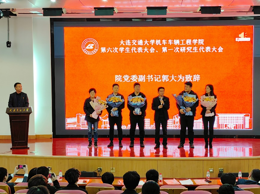 在会议期间,院党委副书记郭大为上台致辞,并在休会时邀请了所有因工作调动而离开机车学院的学生工作者上台,由本科生、研究生代表献花表达来自学院师生们最崇高的敬意和最真挚的感谢!