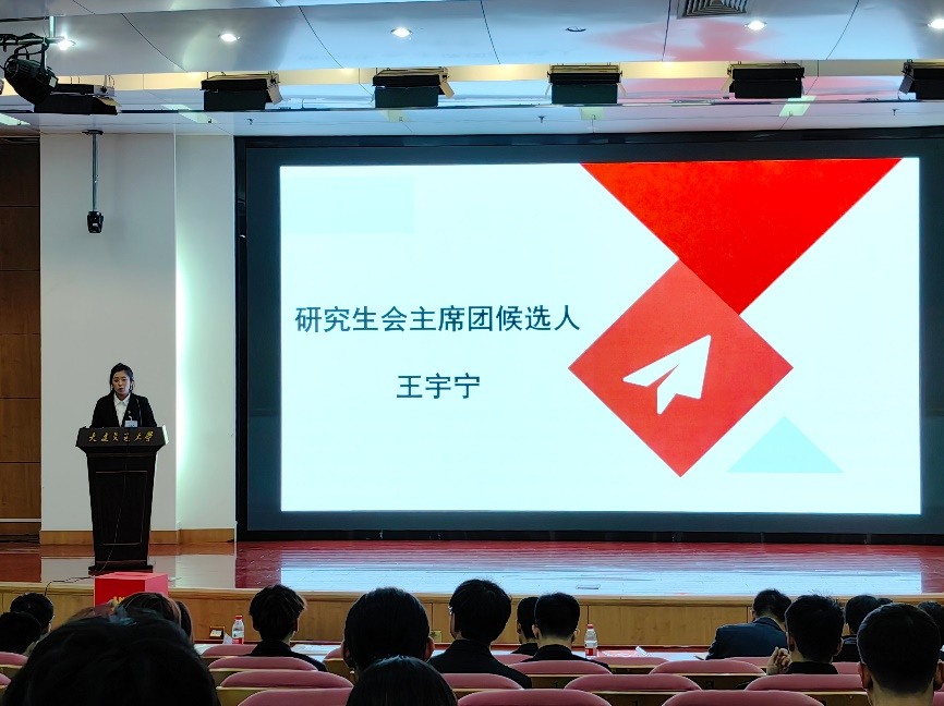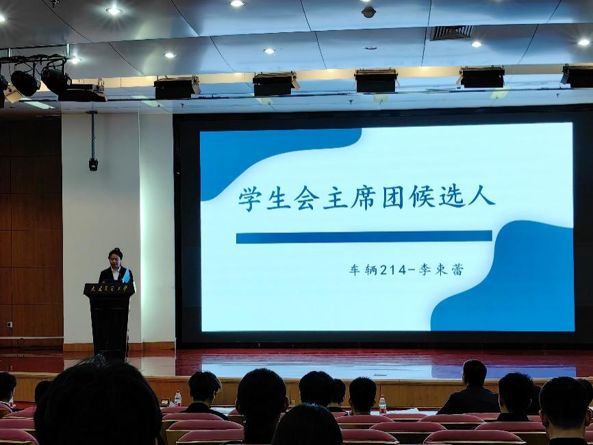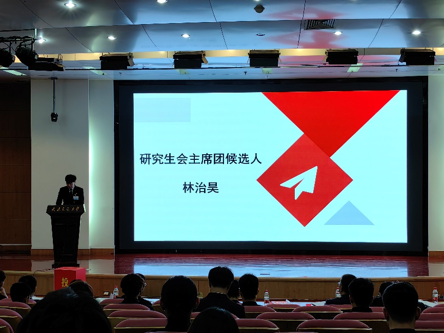 在第六至十一项议程中,主持人分别宣读了第六届学生委员会、第一届研究生委员会常任代表名单,第六届学生会、第一届研究生会主席团候选人建议名单,之后,各位常任代表、主席团候选人依次上台发言。