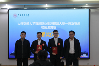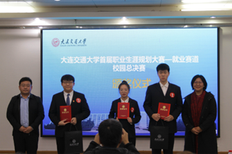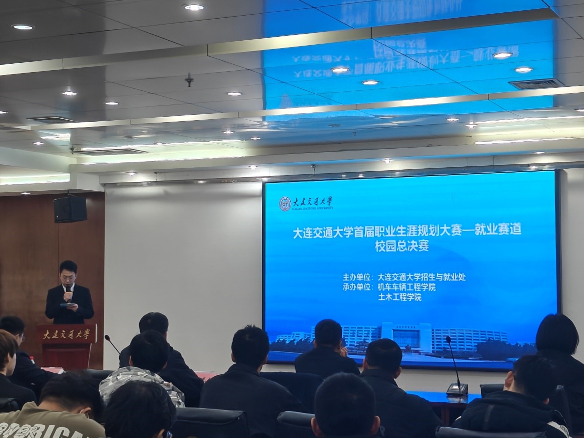 首届大学生职业规划大赛就业赛道决赛在沙河口校区图书馆多功能厅举办。决赛邀请到新东方大连学校副校长马光旭、中铁建设集团华北分公司党委副书记汤强、中车大连机车车辆有限公司人力资源部副部长李铭、中国铁建大桥局一公司人力资源部(党委干部部)部长林君德以及我校学生心理健康教育与咨询中心教师刘薇担任评委。