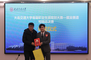 就业赛道设5个分赛道。其中,针对企业职能岗位,设产品研发、生产服务、市场营销、通用职能分赛道;针对公共服务岗位,设公共服务分赛道。就业赛道设主题陈述、综合面试环节。经过激烈的角逐,产生一等奖1名,二等奖2名,三等奖3名,评委嘉宾为获奖选手颁奖。