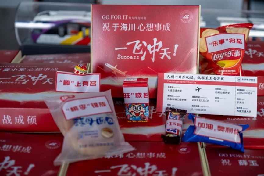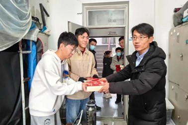 党委书记林玉英、院长王悦东、副院长李花、副院长崔洪江、党委副书记郭大为以及毕业班辅导员刘文洋一行来到学生寝室,亲切慰问即将走上考研战场的机车学子,为即将踏上考研“战场”的战士们,送去了满满的勉励和温馨的“考研飞机餐”。