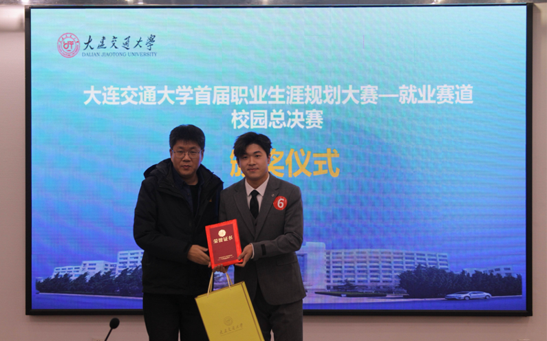 就业赛道设5个分赛道。其中,针对企业职能岗位,设产品研发、生产服务、市场营销、通用职能分赛道;针对公共服务岗位,设公共服务分赛道。就业赛道设主题陈述、综合面试环节。经过激烈的角逐,产生一等奖1名,二等奖2名,三等奖3名,评委嘉宾为获奖选手颁奖。