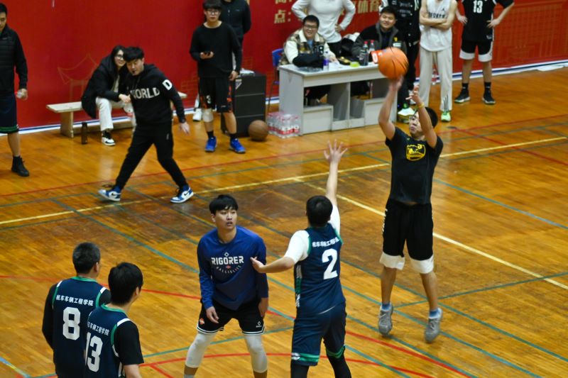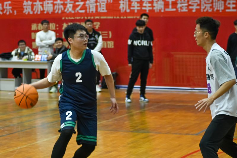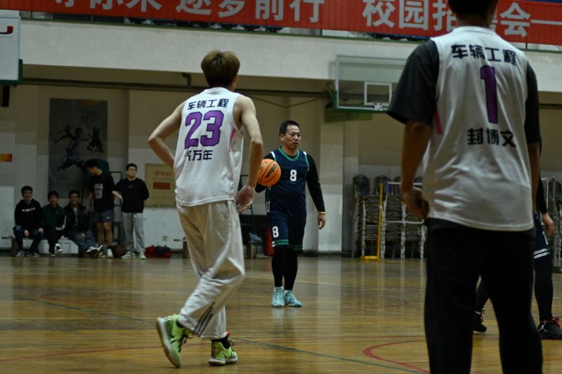 教工代表队凭借丰富的经验与出色的战术占据了场上的主动,时而突破上篮,时而远投三分,矫健的身姿穿梭于球场。学生代表队同样不甘示弱,攻守得当、锐不可挡,用优秀的球技与昂扬的斗志不断化解来自教职工队的攻势,用汗水与激情诠释了机车学子的青春风尚!